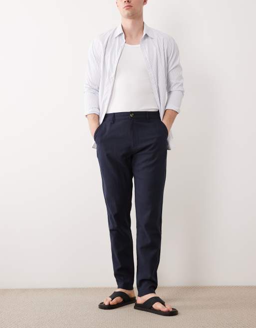 ASOS DESIGN co-ord tapered linen blend trousers in navy