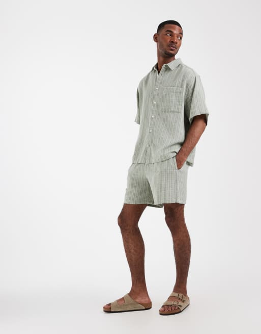 ASOS DESIGN co-ord textured mid length shorts in sage green