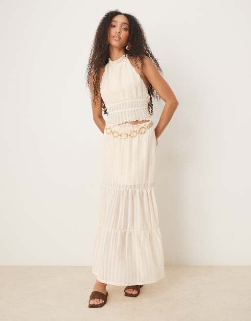 ASOS DESIGN co-ord textured sleeveless halter neck top with open back in cream - CREAM