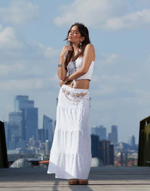 ASOS DESIGN co-ord tiered broderie maxi skirt in white