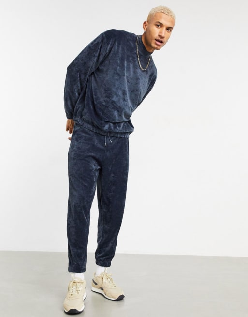 ASOS DESIGN co-ord tracksuit in blue marl towelling