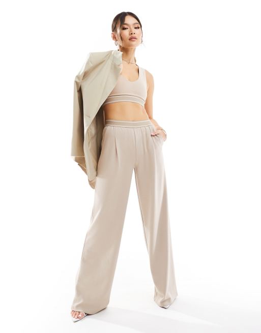 ASOS DESIGN co-ord wide leg trouser with elastic waist trim in stone
