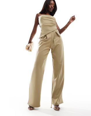 ASOS DESIGN co-ord wide leg trousers in khaki