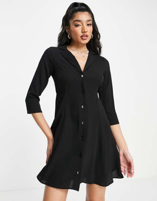 ASOS DESIGN collared long sleeve button through mini shirt dress in black