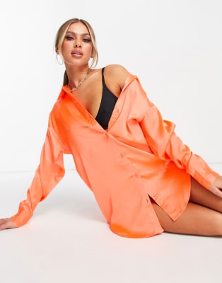 ASOS DESIGN colour block satin beach set in neon orange