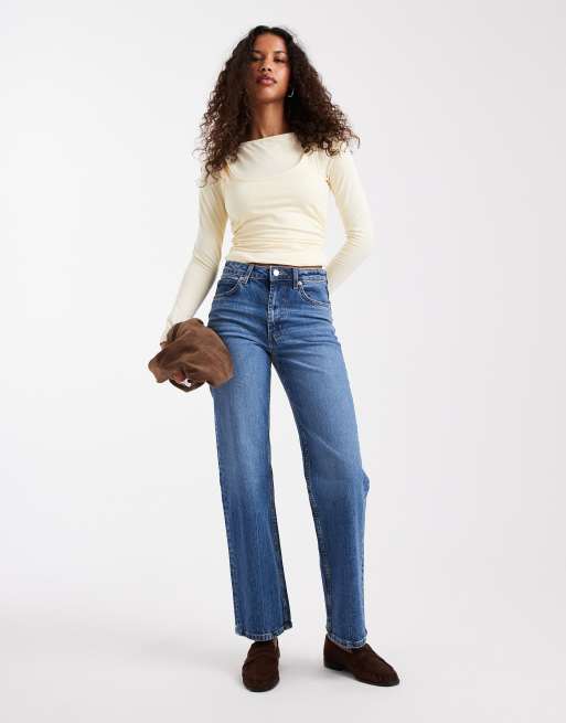 ASOS DESIGN comfort stretch straight leg jeans in authentic mid blue