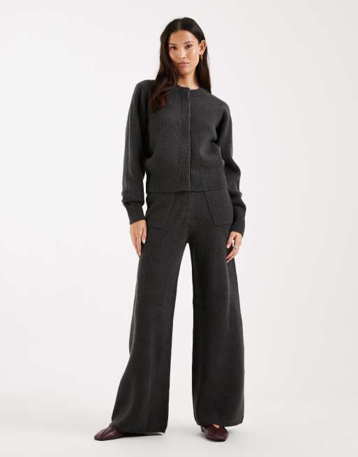 ASOS DESIGN concealed placket lounge bomber & trouser co-ord in charcoal