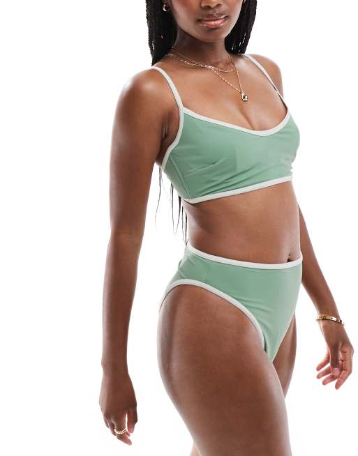 ASOS DESIGN contrast binding bikini in sage green