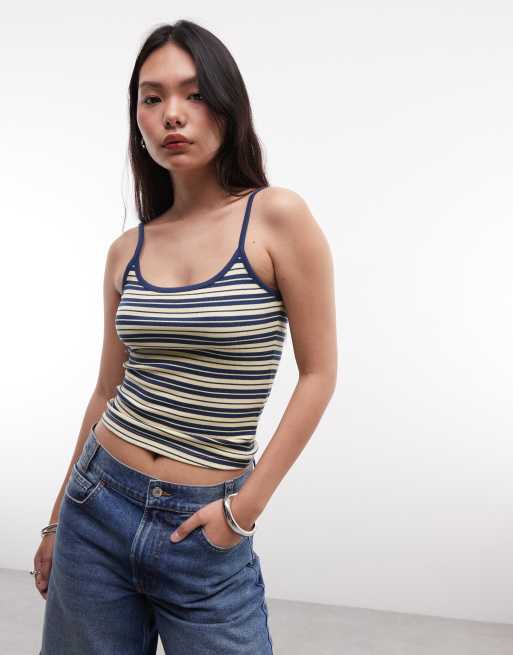 ASOS DESIGN contrast binding scoop detail vest in yellow stripe
