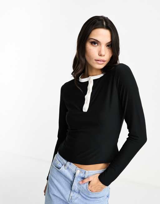ASOS DESIGN contrast button through top in black