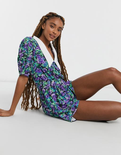ASOS DESIGN contrast collar playsuit in lilac floral print