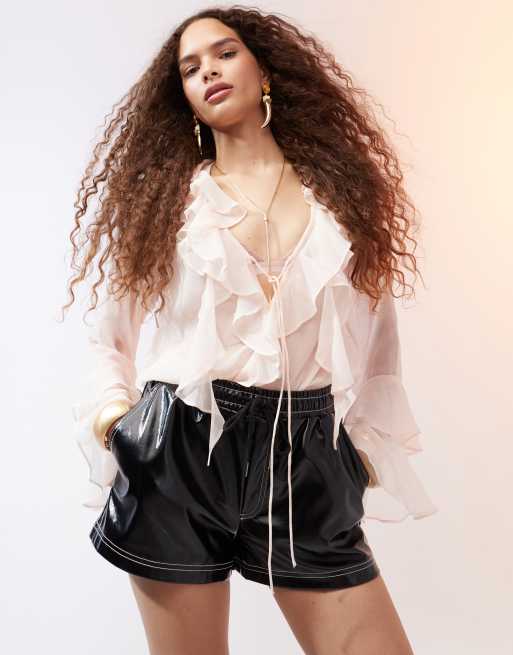 ASOS DESIGN contrast stitch vinyl short in black