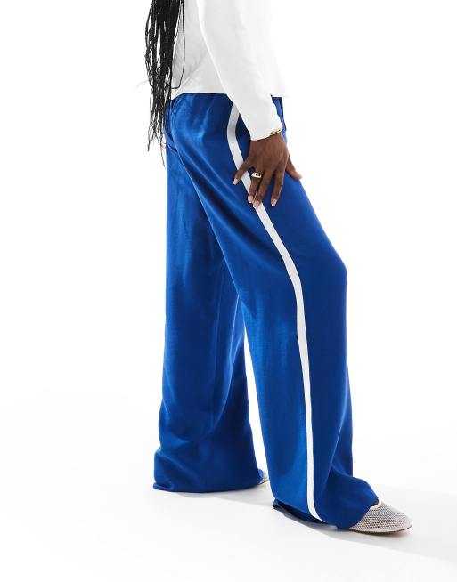 ASOS DESIGN contrast stripe wide leg trouser in blue