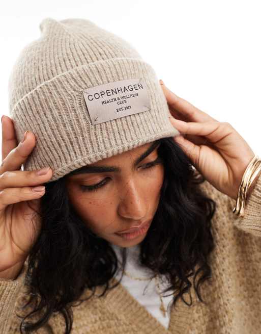 ASOS DESIGN copenhagen label beanie in biscuit