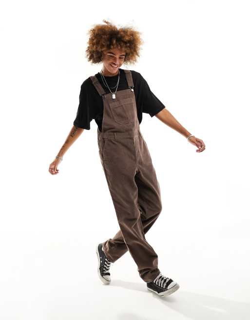 ASOS DESIGN cord dungaree in chocolate brown