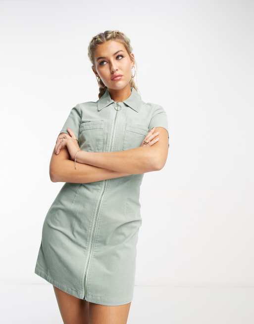 ASOS DESIGN cord mini shirt dress with zip in sage