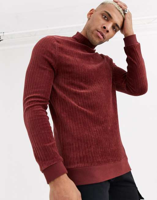 ASOS DESIGN cord sweatshirt with turtle neck in reddy brown