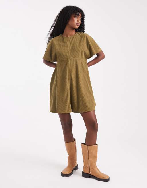 ASOS DESIGN cord t-shirt mini dress with stitching detail in olive