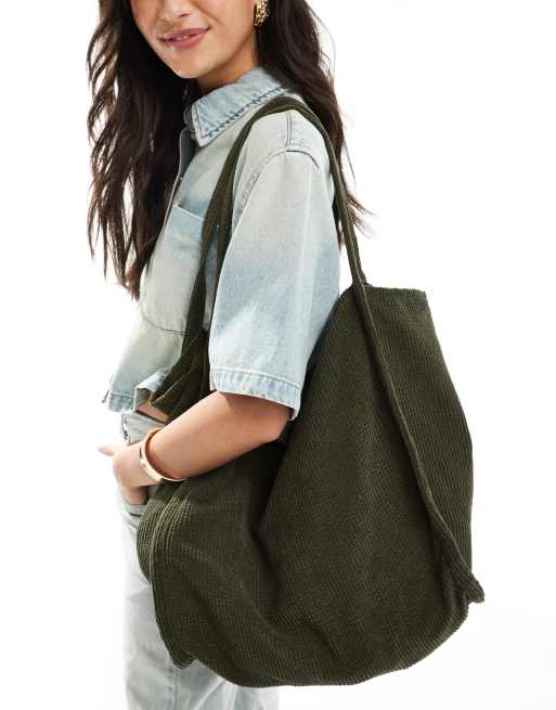 ASOS DESIGN cord tubular handle canvas tote bag in green