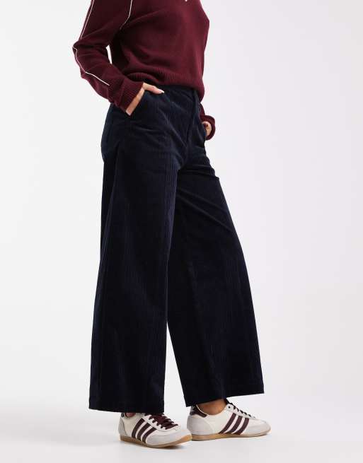 ASOS DESIGN cord wide leg ankle grazer trousers in navy