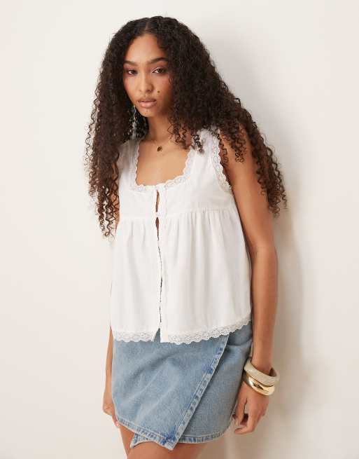 ASOS DESIGN cotton baby doll lace trim cami top in ecru