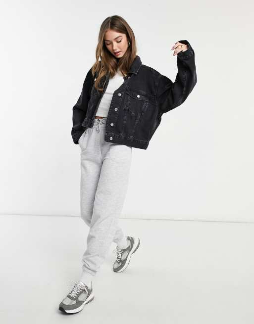 ASOS DESIGN cotton blend denim '90's jacket in washed black - BLACK