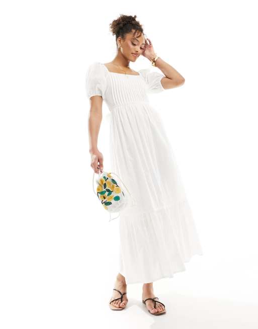 ASOS DESIGN cotton dobby midi dress with lace up back in white
