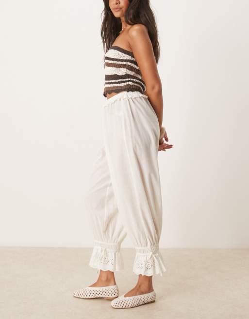 ASOS DESIGN cotton lace trim bloomer trouser in ivory