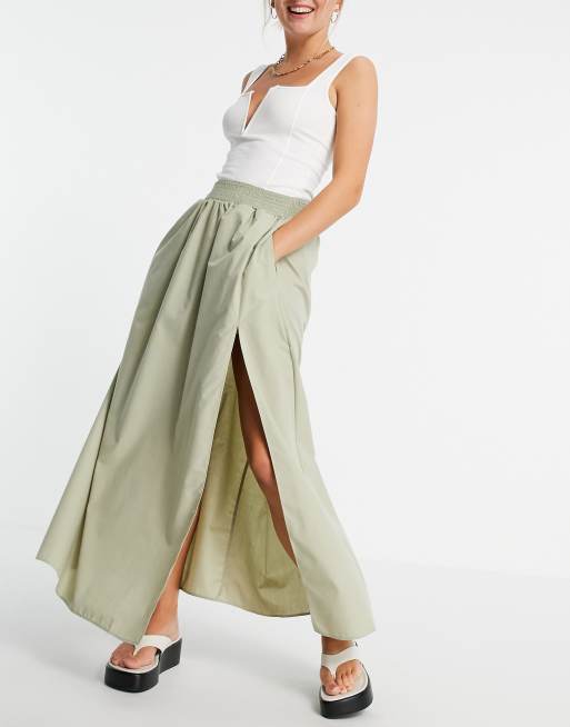 ASOS DESIGN cotton maxi skirt with side split detail in khaki