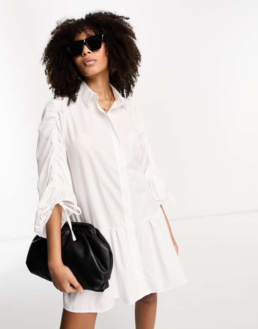 ASOS DESIGN cotton mini smock shirt dress with pephem in white