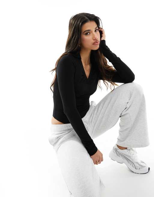 ASOS DESIGN cotton modal collared bodysuit in black