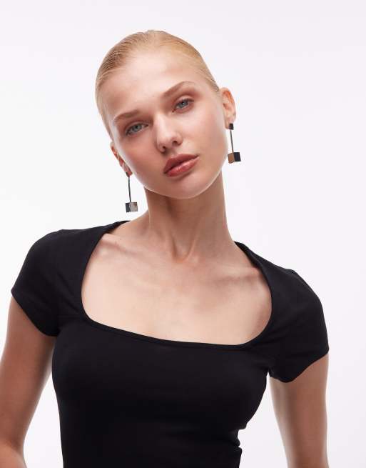 ASOS DESIGN cotton square neck cap sleeve top in black