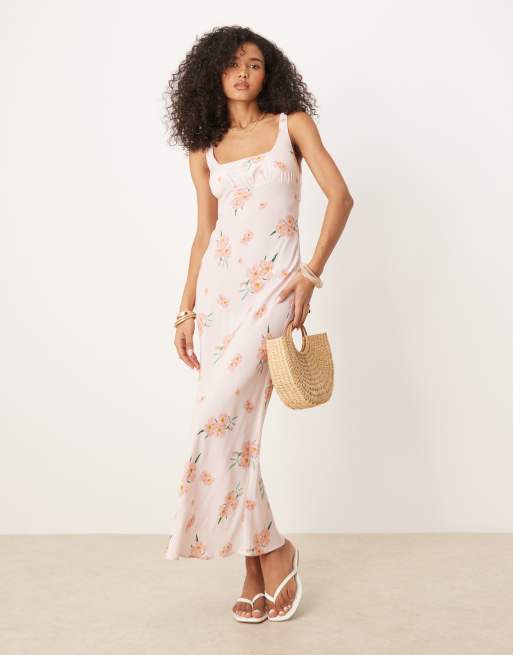 ASOS DESIGN cowl back spun ruched bust maxi dress in floral print