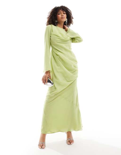 ASOS DESIGN cowl overlay drape front maxi dress in lime green