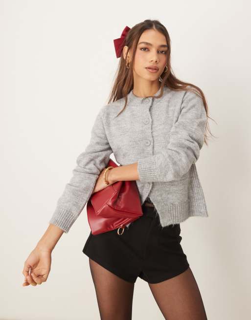 ASOS DESIGN crew neck crop cardigan with split hem in grey