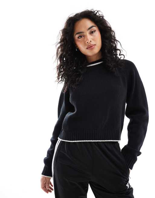 ASOS DESIGN crew neck jumper with fashioning detail and tipping in black and white