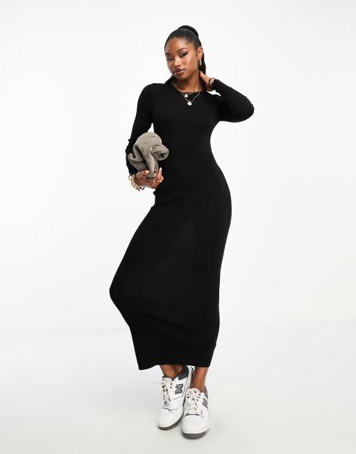 ASOS DESIGN crew neck ribbed maxi dress in black