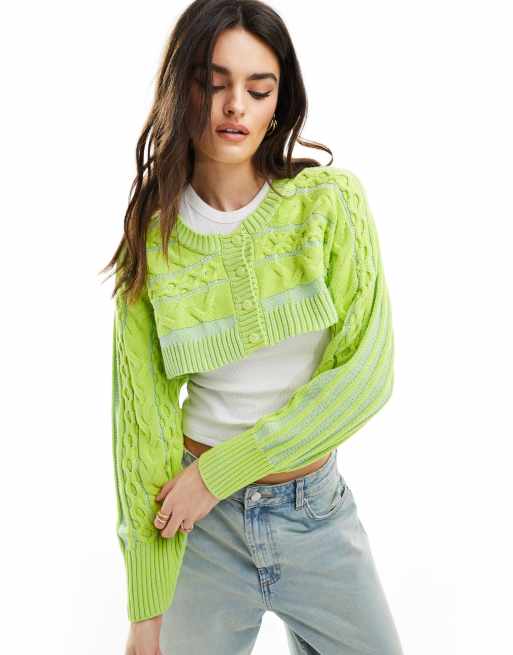 ASOS DESIGN crew neck wide cropped cardigan in green