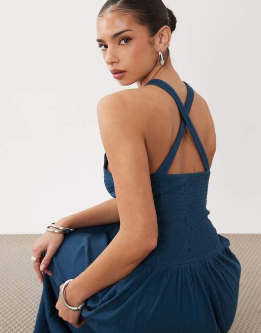 ASOS DESIGN crinkle built up cross back midi dress in navy