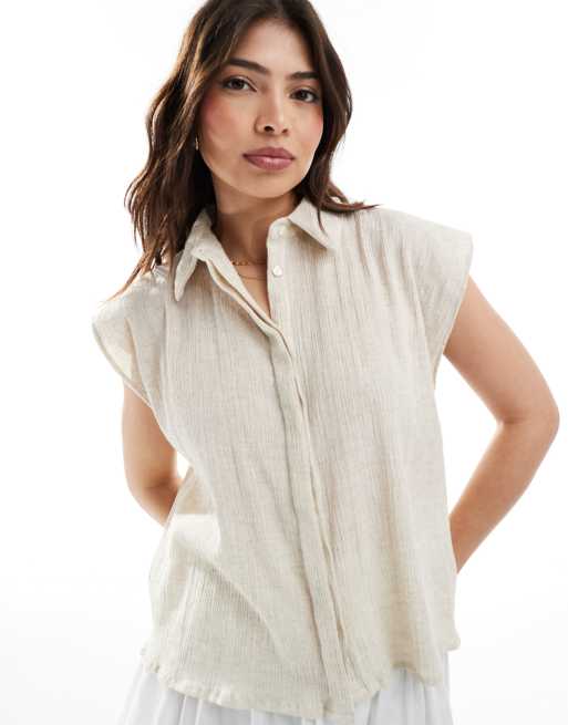 ASOS DESIGN crinkle linen look sleeveless shirt in natural