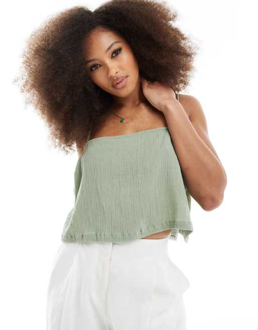 ASOS DESIGN crinkle linen look square neck cami top in sage green