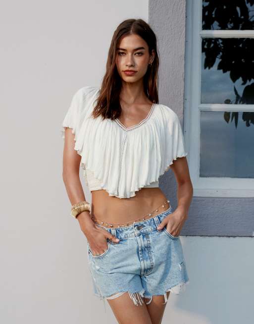 ASOS DESIGN crinkle tie back cape top in ecru