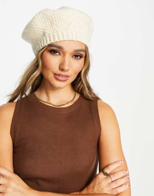 ASOS DESIGN crochet knit beret in cream