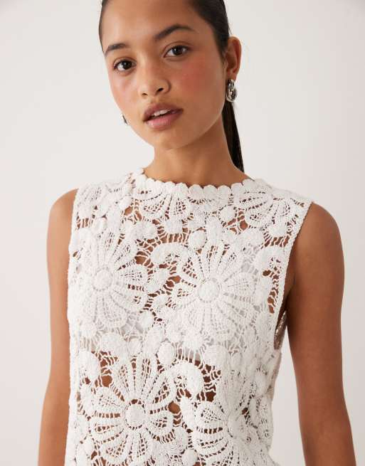 ASOS DESIGN crochet knitted tank co-ord in white