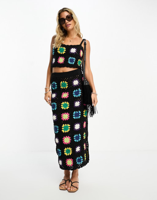 ASOS DESIGN crochet patchwork co-ord in multi