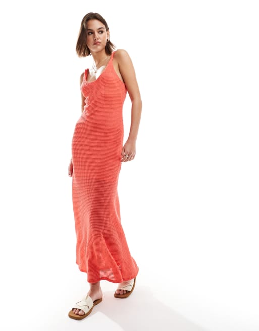 ASOS DESIGN crochet twisted strap maxi dress in coral