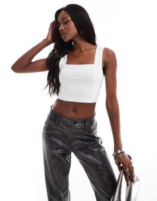 ASOS DESIGN crop cami square neck seam detail in white