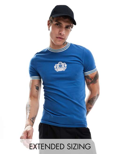 ASOS DESIGN cropped muscle ringer t-shirt with chest print in blue