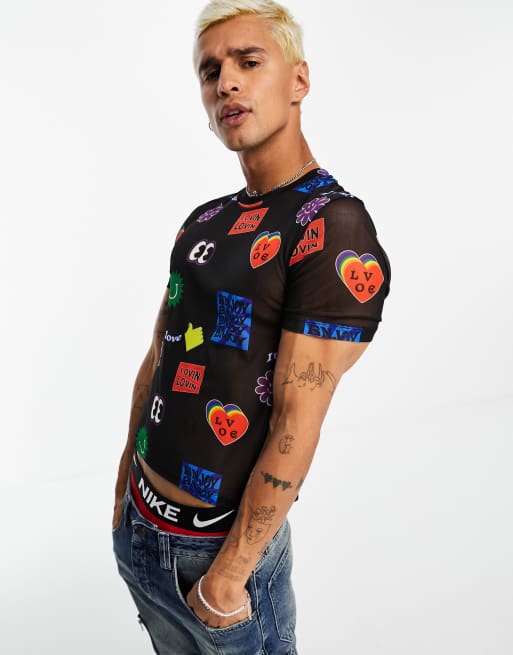 ASOS DESIGN cropped muscle t-shirt in mesh with all over print