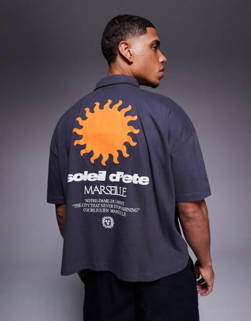 ASOS DESIGN cropped oversized dropped shoulder polo with puff print graphic